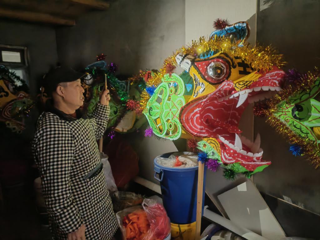 “纯手工编扎毛龙,一条龙需要40个活儿(方言,一个人一天的工作量为一个活儿)。”代尚福告诉记者,他和儿子代鑫平均每年要编扎十多条毛龙。