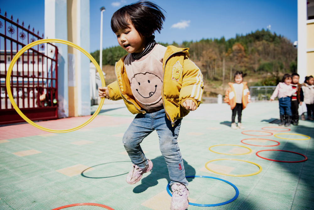 云南省鎮(zhèn)雄縣以古鎮(zhèn)巖洞腳村幼兒園的孩子在操場上玩耍(2020年11月11日攝)。新華社記者 王冠森 攝