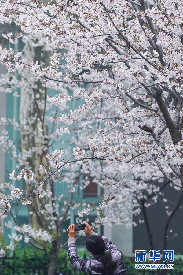 近日,南京街頭盛開的櫻花燦若云霞,吸引眾多市民游客外出賞花游玩,享受春日美景。