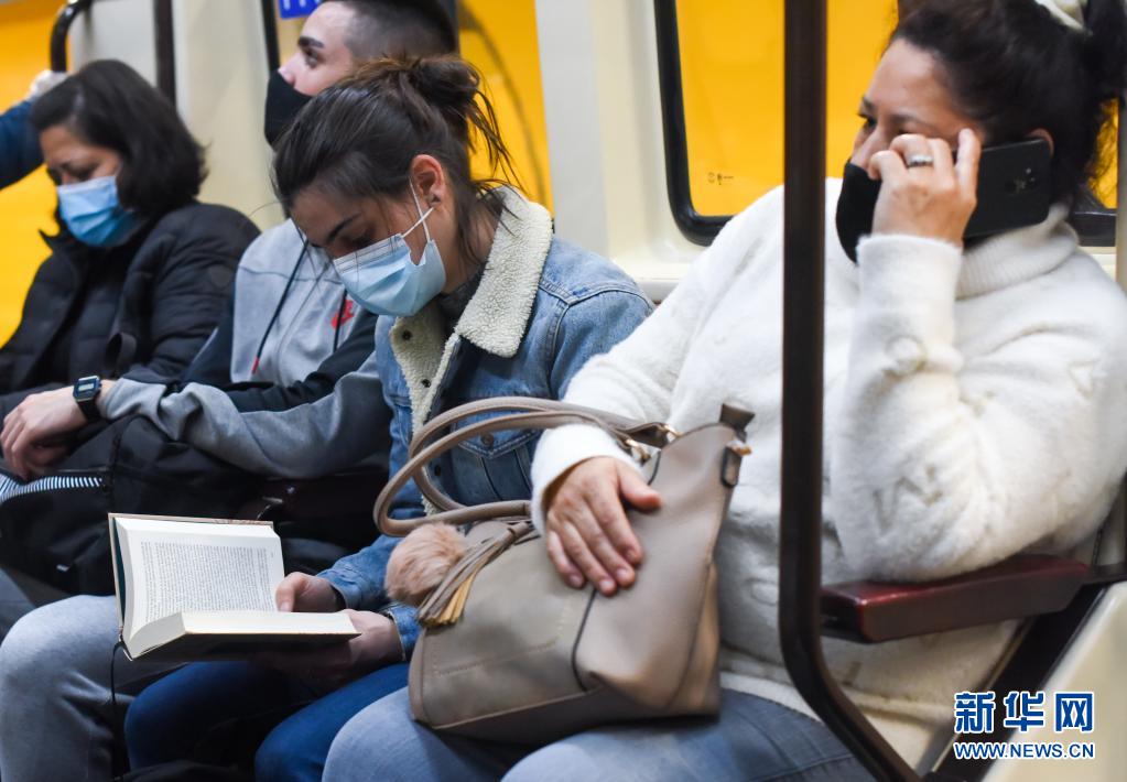 4月14日,一名女子在西班牙馬德里的地鐵內(nèi)讀書。
