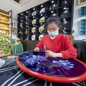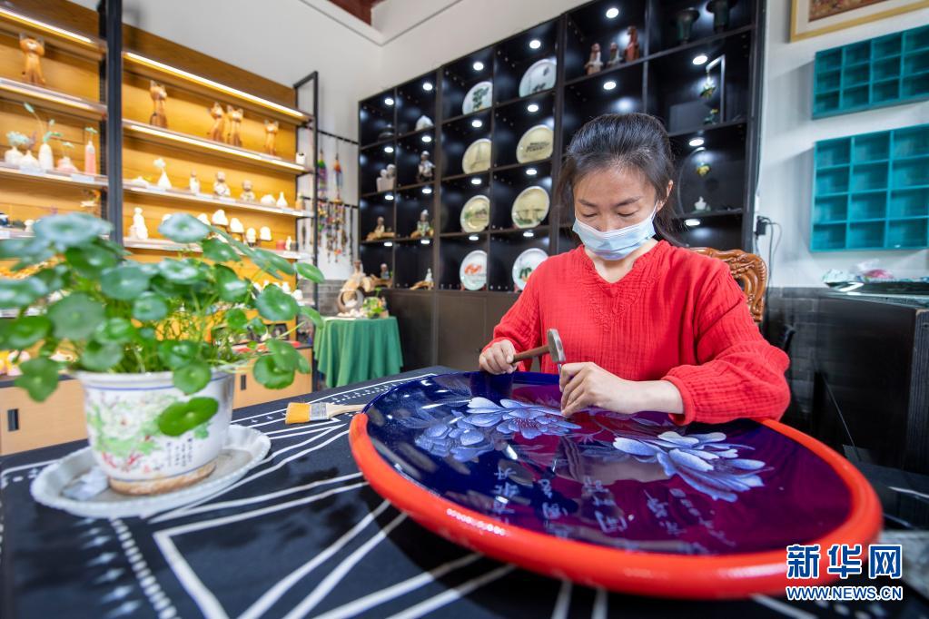 5月4日,山西省級非遺傳統(tǒng)刻瓷項(xiàng)目傳承人苗振潔在太原古縣城內(nèi)刻瓷。