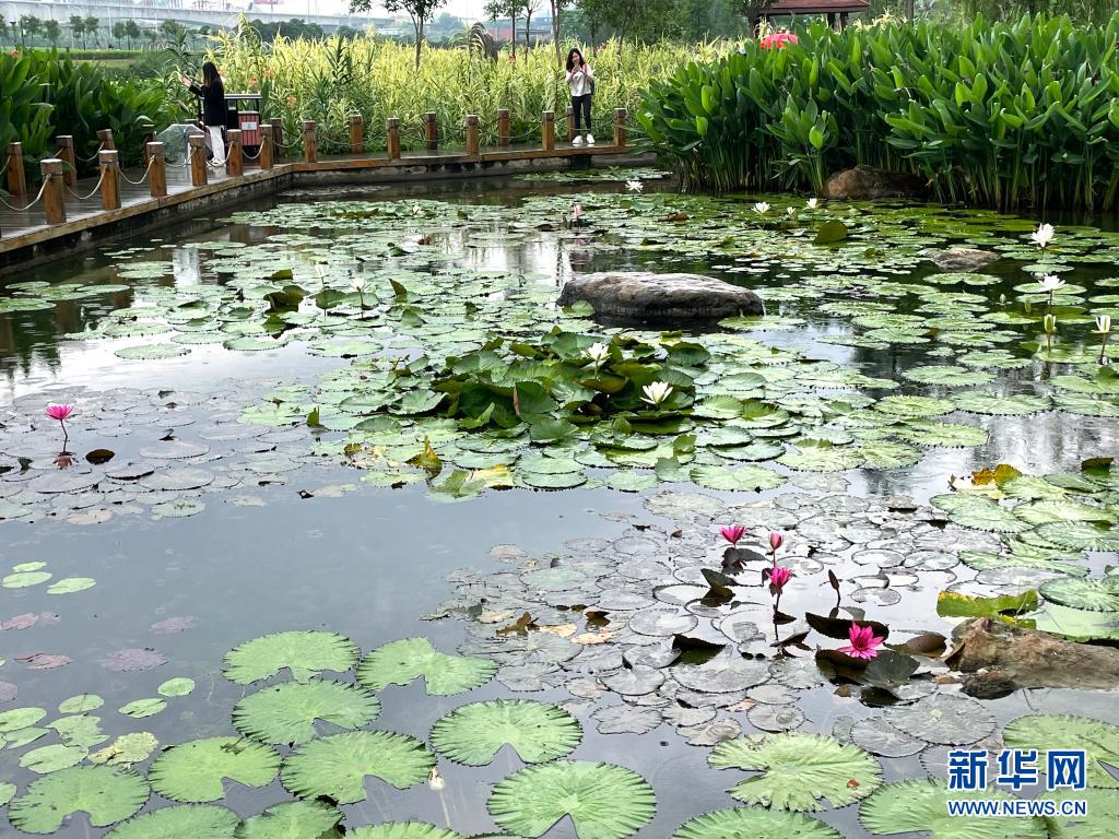 立夏時節(jié),廣西南寧市那考河濕地公園內(nèi)草木吐翠、鮮花斗艷,一派繁茂景象。