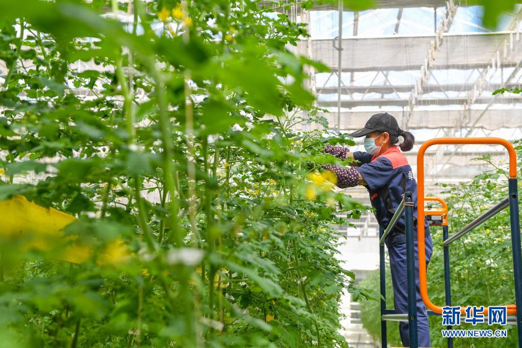 在吉林省吉林市永吉縣卓遠(yuǎn)農(nóng)業(yè)種植專(zhuān)業(yè)合作社的“植物工廠”,農(nóng)民趙玉霞在修整作物(4月14日攝)。新華社記者 張楠 攝