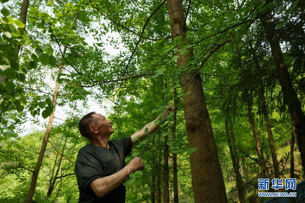 5月4日,林興聰在自家林地里看著茁壯成長(zhǎng)的銀杏樹。 新華社記者 江宏景 攝