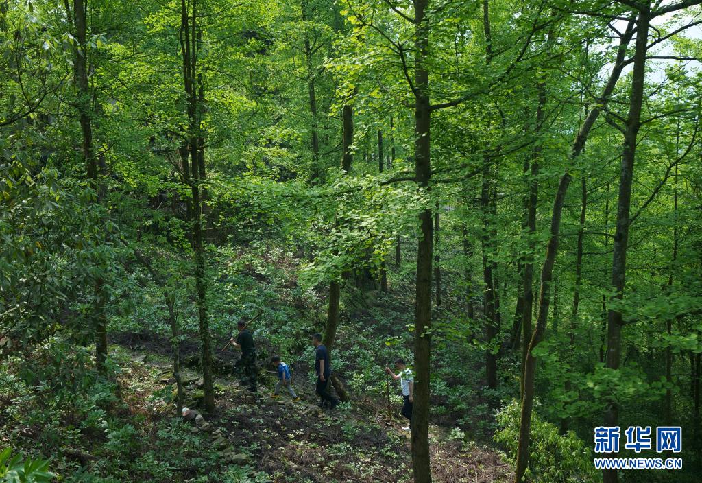 5月4日,林興聰(左一)帶著兒孫們?nèi)サ乩飫趧?dòng)。 新華社記者 江宏景 攝