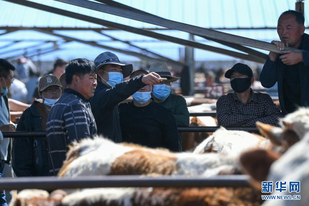 6月1日,交易者在開魯牛市交易攤位看牛詢價(jià)。