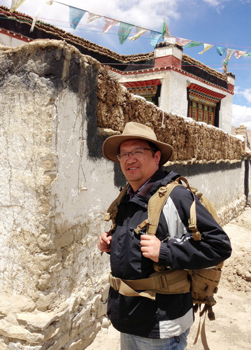 鐘揚在西藏日喀則進(jìn)行植物采樣時留影。(新華社發(fā) 馮艾攝)