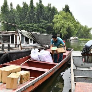 位于微山湖北端的山東省濟寧市微山縣南陽鎮(zhèn)四面環(huán)水,交通不便,生活物資和郵件包裹全靠船進船出。36歲的共產(chǎn)黨員王少朋,自2007年工作以來就一直負責(zé)著微山縣郵政分公司南陽支局唯一一條水上郵路。