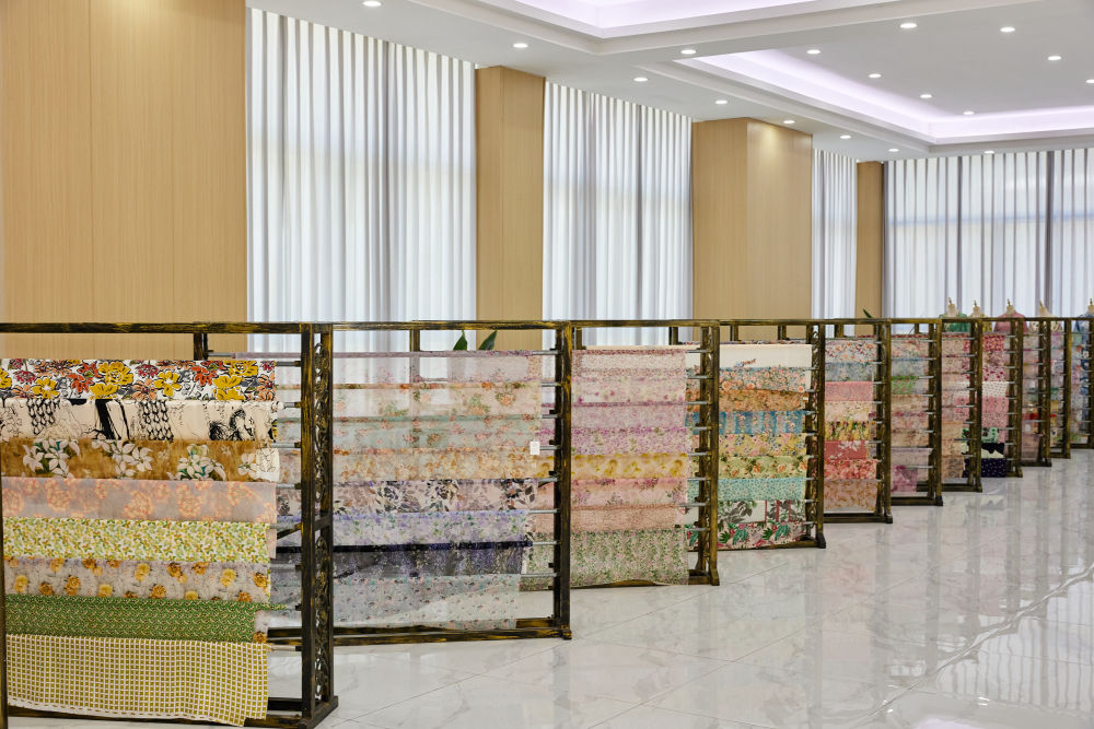 图为广西忻城县粤桂协作茧丝绸产业园内的丝绸织品展示。