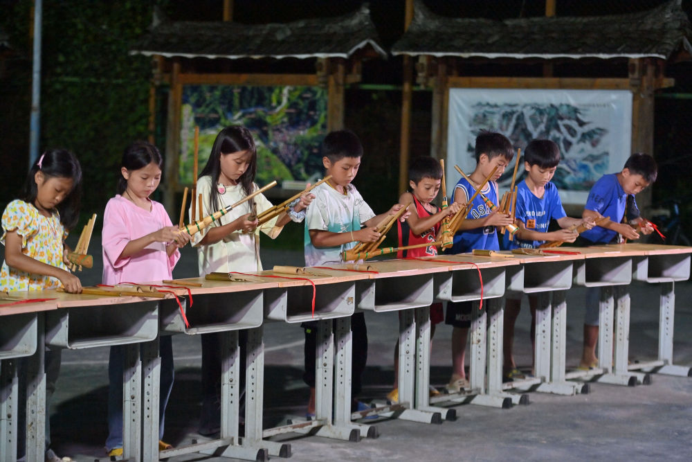 图为广西融水苗族自治县杆洞乡乌英苗寨孩子们参加芦笙组装比赛的资料照片。粤桂协作带动当地完善基础设施,助深山苗寨文化振兴。(新华社记者黄孝邦 摄)