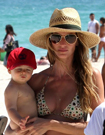 吉賽爾-邦辰攜子戲水(高清)