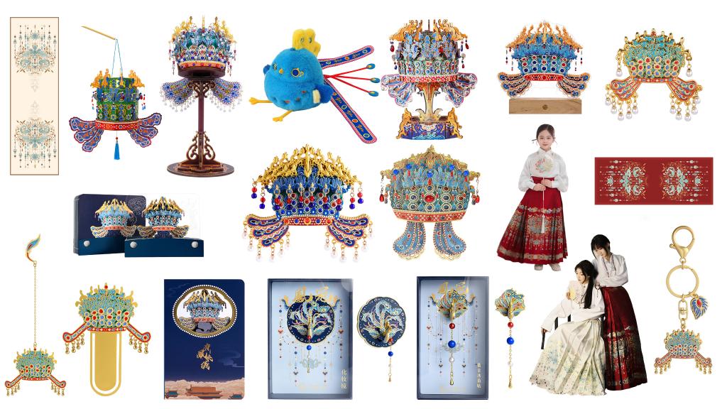 截至目前,围绕凤冠IP,国博文创团队已开发设计出笔记本、毛绒玩具、马面裙、雪糕、音乐盒等20余款文创产品,进一步扩大文物影响力。
