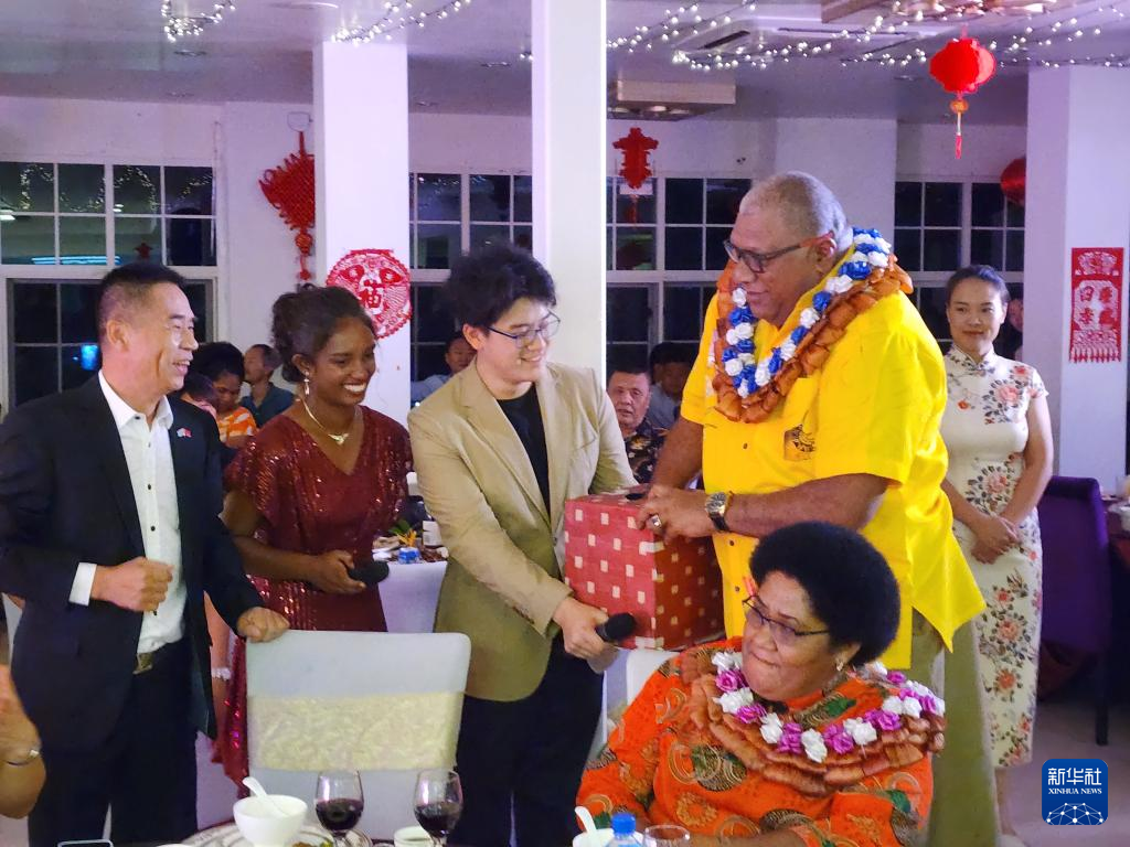 5日晚,斐济首都苏瓦悦来大酒店三楼大厅内大红灯笼高悬,红色中国结格外喜人。由中国驻斐济大使馆、斐济中国文化中心及当地侨团举办的欢乐春节元宵联欢会在这里举行。精美的冰雪图片展令人流连忘返,斐济民族舞蹈、斐济时装秀、云南手鼓等精彩表演轮番上场,为嘉宾奉上一场文化视觉盛宴。斐济总统卡托尼韦雷祝愿中国在新的一年里更加成功繁荣,期待将两国关系提升到新高度。