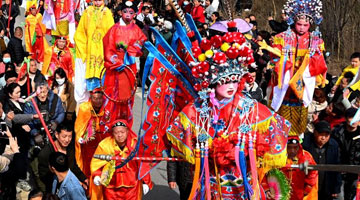 2月22日,在西藏博物馆,“堆谐”舞蹈演员向观众谢幕。