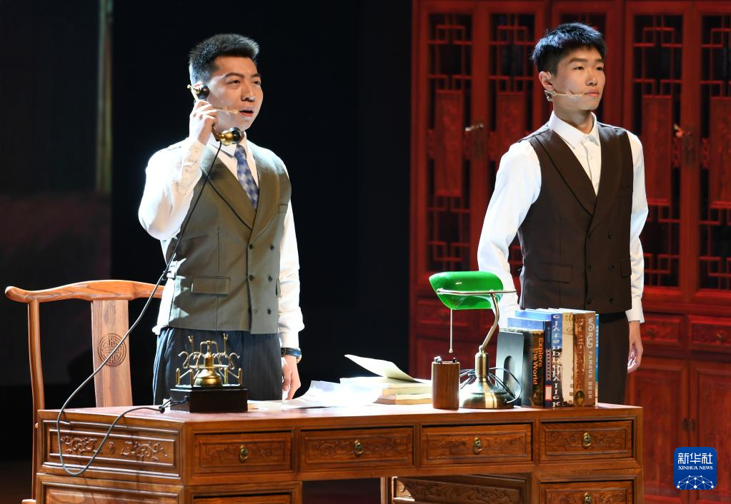 当日,由108名北京交通大学机电学院在读学生表演的原创话剧《中国机车先驱》在校内天佑会堂公演。据了解,该话剧情景再现了我国第一台大马力蒸汽机车设计者及监造者应尚才教授的人生轨迹,反映其“爱路报国”的精神追求。