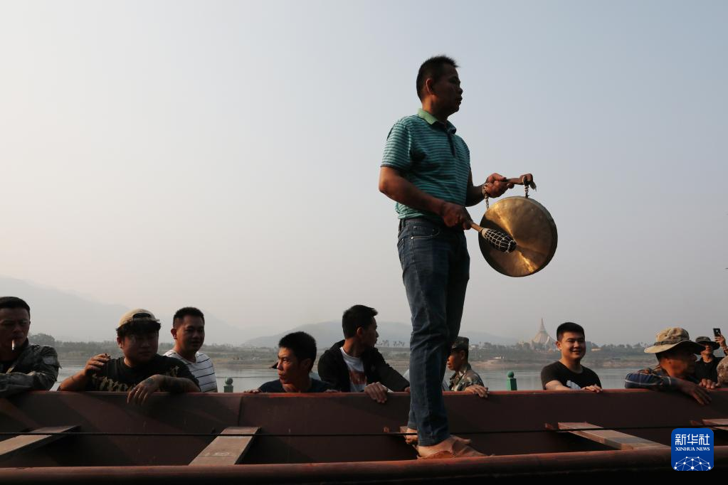 4月1日,云南省景洪市勐罕镇曼听村村民在澜沧江边进行龙舟下水仪式。