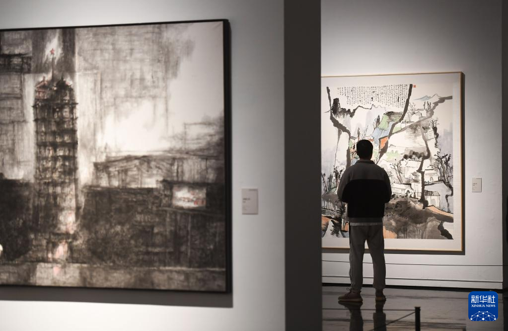4月5日,观众在郑州美术馆新馆参观。