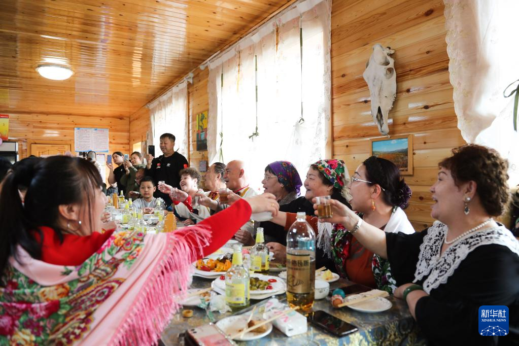 4月16日,俄罗斯族群众欢聚一堂,庆祝巴斯克节。