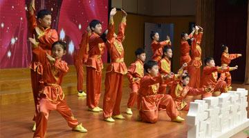 在位于杭州临安吴越文化公园的“地道吴越”民间手工艺文化空间内,孩子们在老师的带领下学习木版年画拓印技艺(5月14日摄)。该文化空间集临安非遗、临安民艺、文创研学、休闲体验为一体,近百件临安民艺产品在这里汇集。