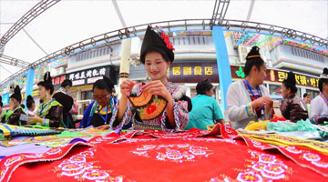 在位于杭州临安吴越文化公园的“地道吴越”民间手工艺文化空间内,顾客在挑选特色手工艺制品(5月14日摄)。该文化空间集临安非遗、临安民艺、文创研学、休闲体验为一体,近百件临安民艺产品在这里汇集。