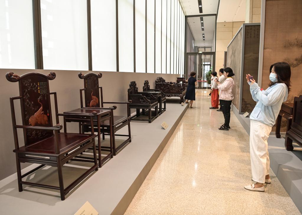 当日,“心·传——陈玉树新时代古典家具艺术展”在位于北京的中国工艺美术馆、中国非物质文化遗产馆举办,展出了高级工艺美术师陈玉树近年创作的20套古典家具,展现出中国木作技艺之美。