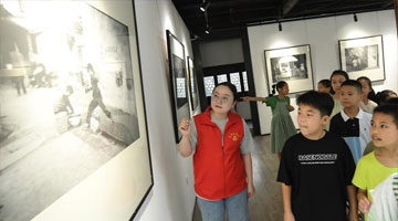 7月21日晚,小朋友在夜间“那达慕”大会上体验射箭。