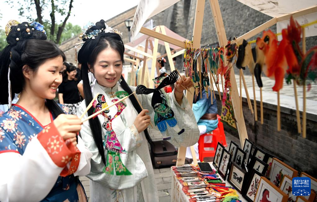 当日,陕西省西安市新城区“遇见城墙·非遗韵”非遗集市主题活动在西安城墙中山门下举办。秦腔、华阴老腔等特色非遗节目在永兴坊戏楼前轮番表演,皮影、布艺、工艺葫芦等二十多种非遗作品在顺城巷内集中亮相,丰富市民文化生活的同时也让游客感受到陕西非遗的独特魅力。