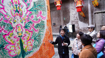 这是贵州省石阡县国荣乡楼上古寨的摄影文化长廊(11月15日摄)。