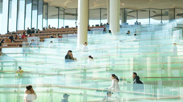 1月15日,行人从杭州吴山广场上以龙为主题的雕塑作品边经过。