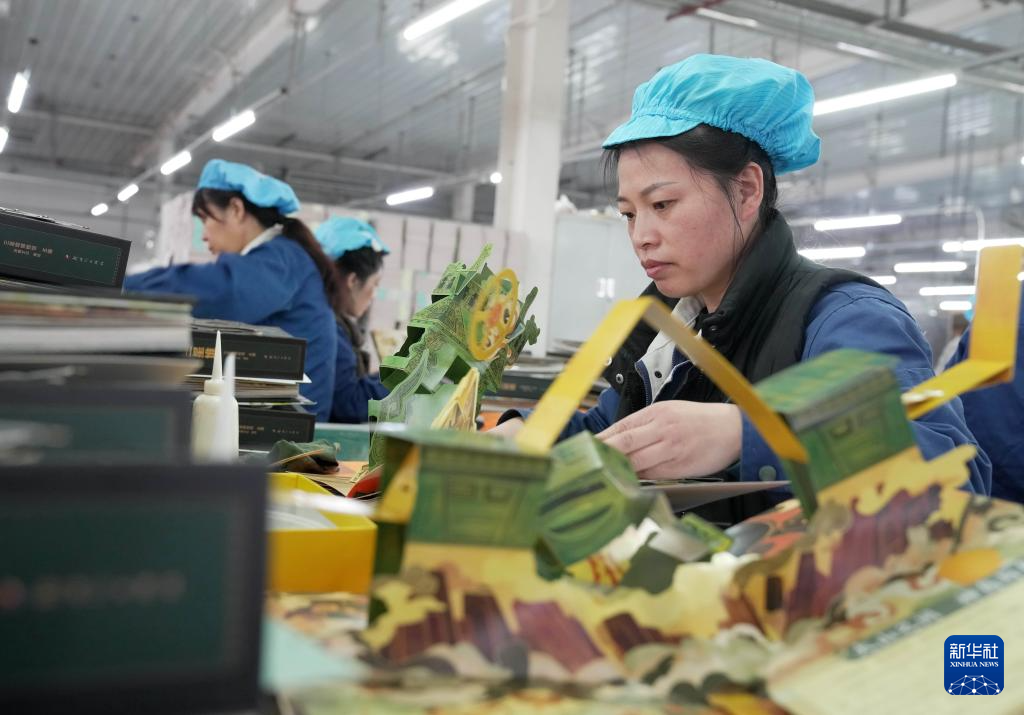 1月19日,工人在河北省肃宁县一家图书印刷企业的生产车间工作。