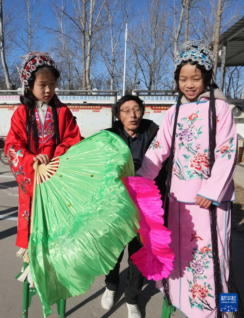 民俗专家在北京市大兴区魏善庄镇大狼垡村指导小朋友排练节目(1月22日摄)。
