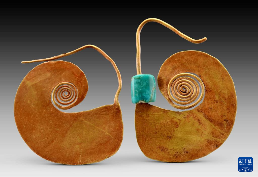 陕西清涧寨沟遗址后刘家塔墓地出土的金耳环(资料照片)。