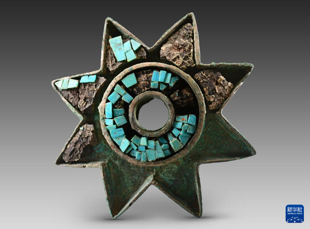 陕西清涧寨沟遗址后刘家塔墓地出土的镶绿松石铜饰(资料照片)。