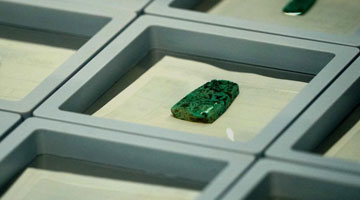 3月26日,在山东省滨州市沾化区大高镇枣木雕刻工坊内,工作人员何义青将雕刻的半成品取出。