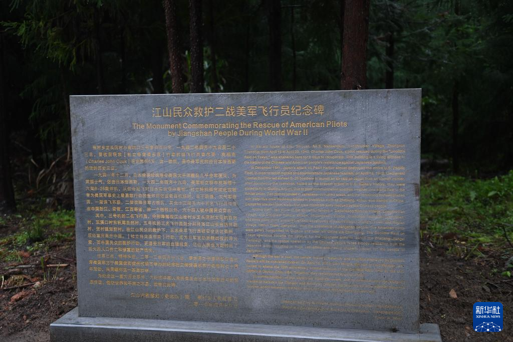 4月16日在衢州江山市大桥镇芳源村拍摄的“杜立特行动”威尔德降落点标识。1942年,“杜立特行动”5号机飞行员罗斯·威尔德曾在村民毛光孝等的救援下安全转移。