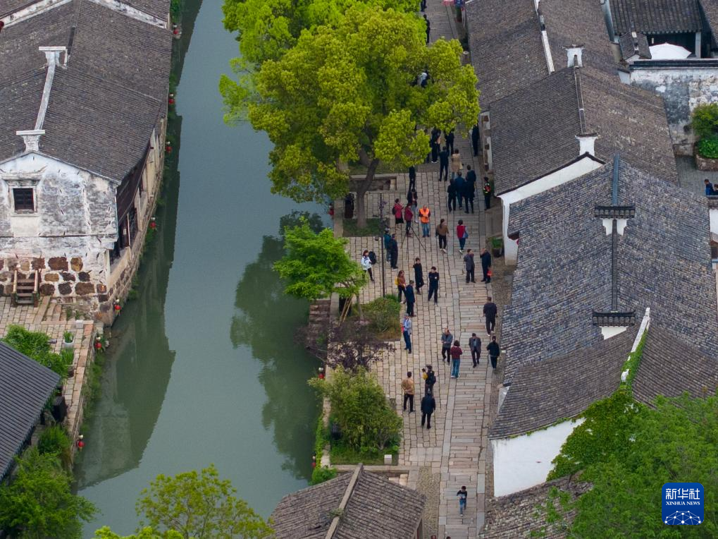4月21日,游客在常州焦溪古镇游览。