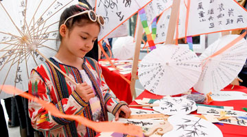 4月21日,苗族小朋友参加台江苗族姊妹节盛装游演。