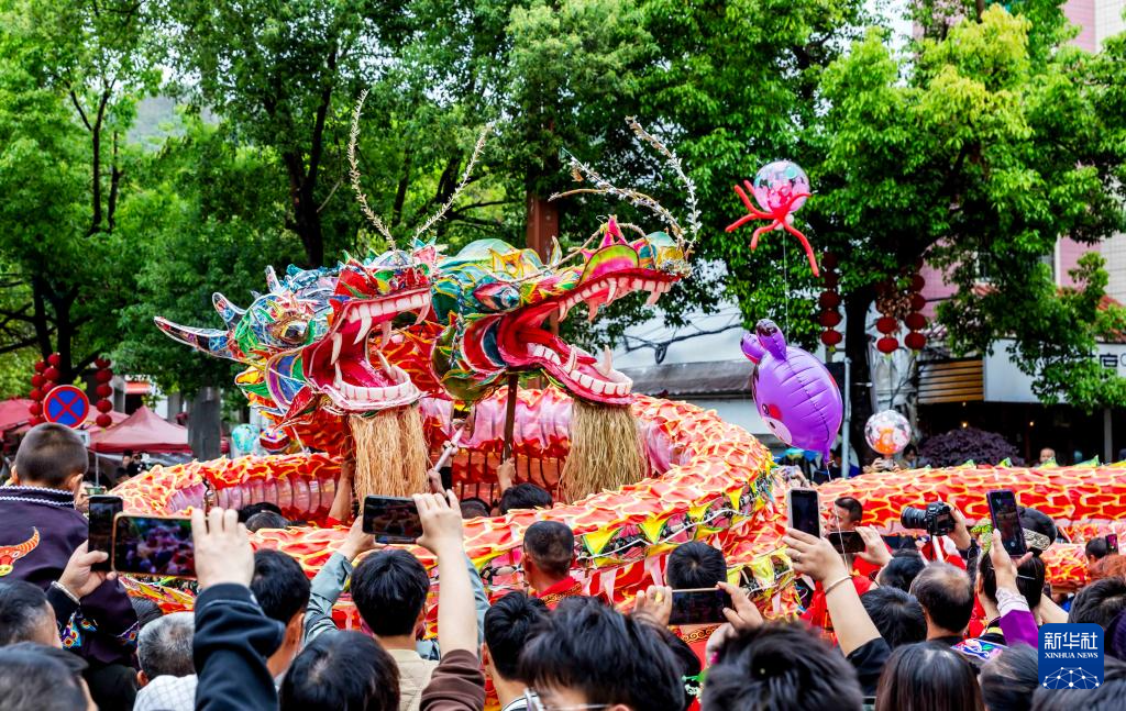 4月21日,人们在台江县苗族姊妹节进行舞龙表演。