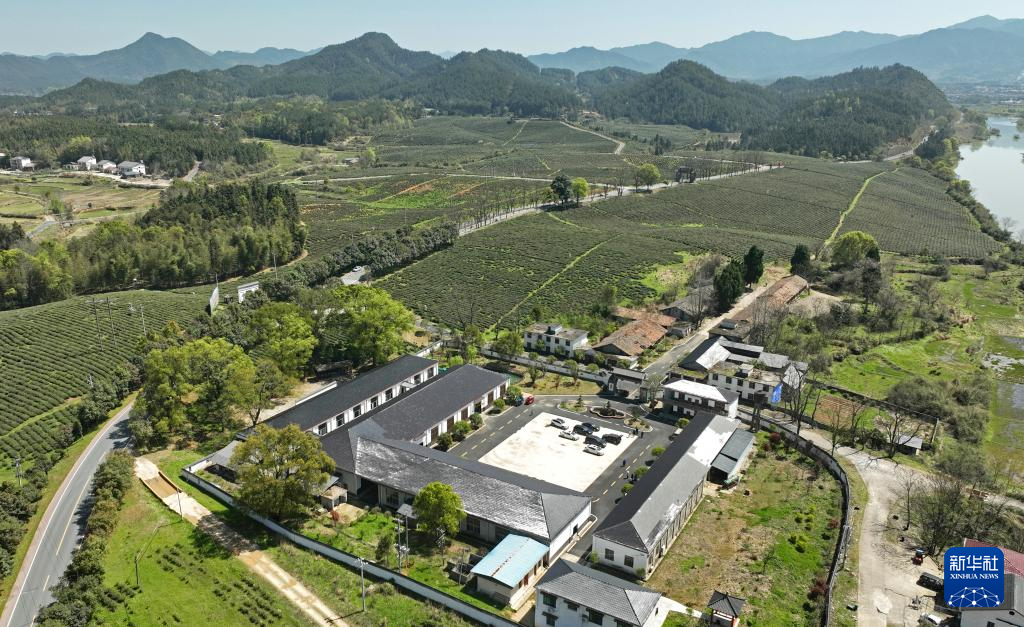 江西省修水县漫江乡山水之间的宁红茶制茶基地(3月29日摄,无人机照片)。