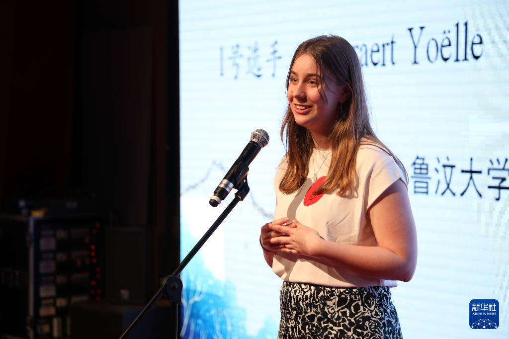 4月28日,参赛选手在比利时布鲁塞尔参加“汉语桥”世界大学生中文比赛比利时赛区决赛。