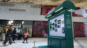 观众在大足石刻游客中心观看球幕电影。(大足石刻研究院供图)
