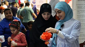 5月15日,小朋友在贵州省黔东南苗族侗族自治州从江县贝贝佳幼儿园迎“四月八”活动上品尝美食。