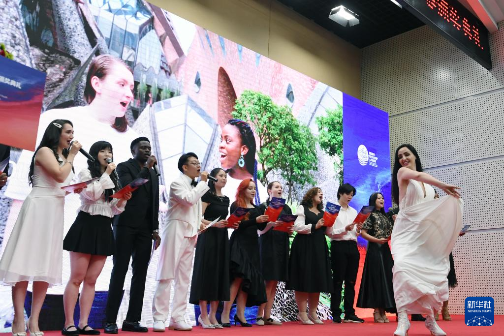 5月28日,在颁奖典礼上,由留学生组成的“留学中国云合唱团”表演合唱节目《梦想之路》。