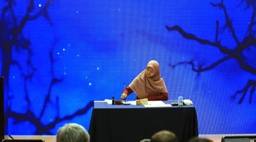 6月3日,重庆市黔江区舟白街道举办迎端午民俗文化活动,一名参加包粽子比赛的选手展示自己包的粽子。