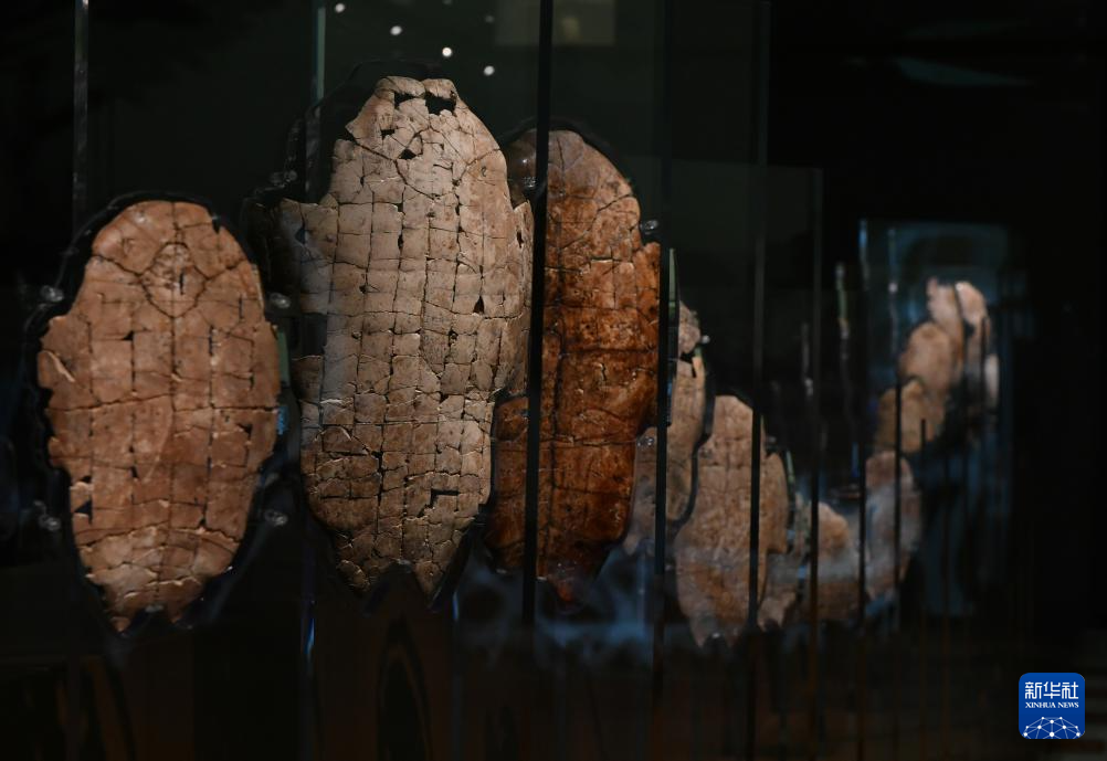 这是在殷墟博物馆新馆拍摄的1973年安阳小屯出土的刻辞卜骨,是该博物馆的镇馆之宝之一(7月1日摄)。
