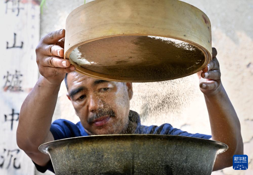 张书芳在准备进行筛粉步骤的工具(7月3日摄)。