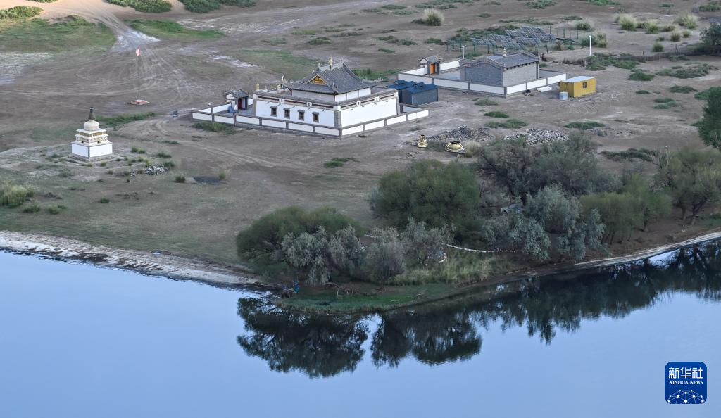 2024年7月30日拍摄的巴丹吉林沙漠中的巴丹吉林庙。新华社记者 贝赫 摄