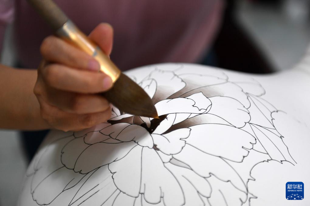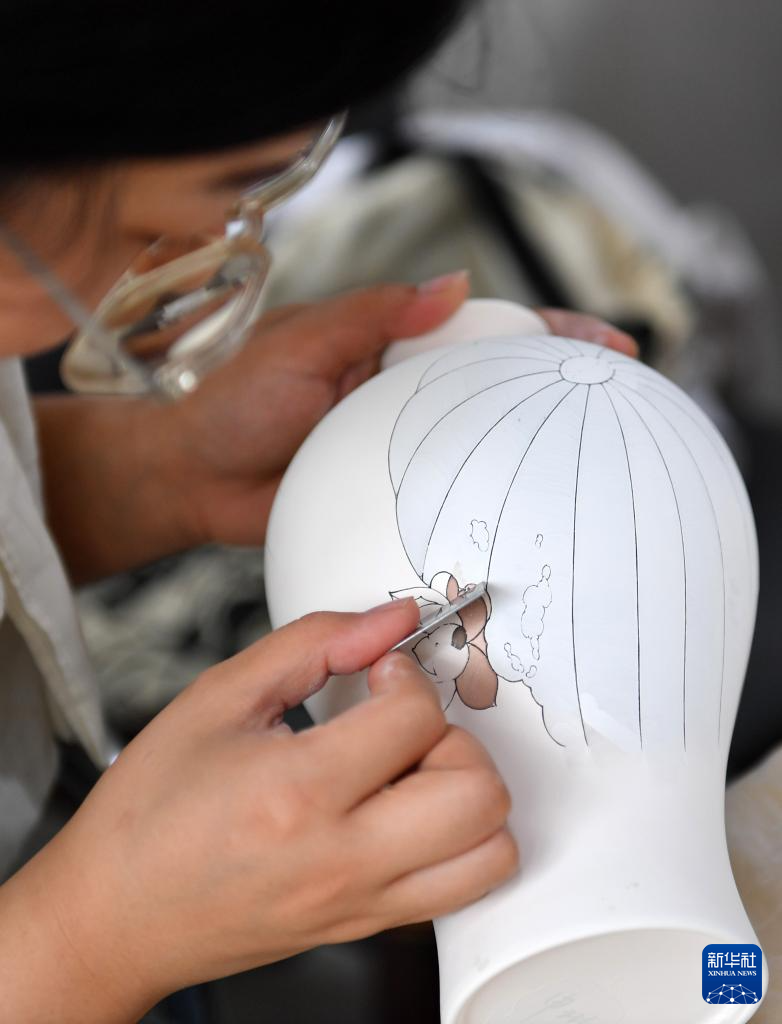 9月27日,醴陵釉下五彩瓷烧制技艺省级非遗代表性传承人申彬在制作陶瓷彩绘。
