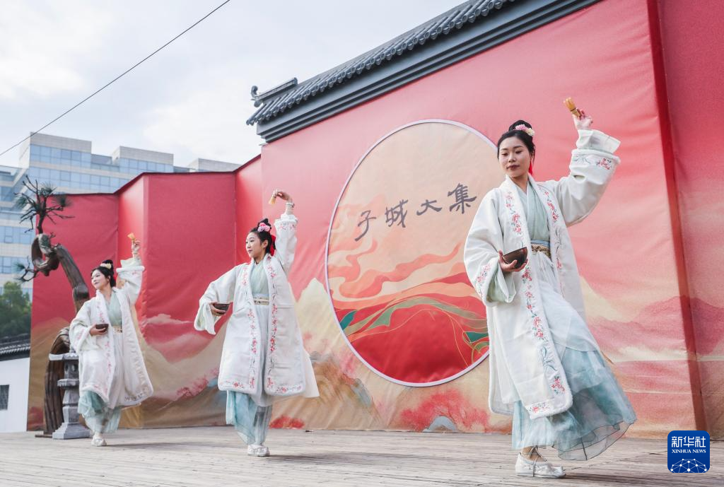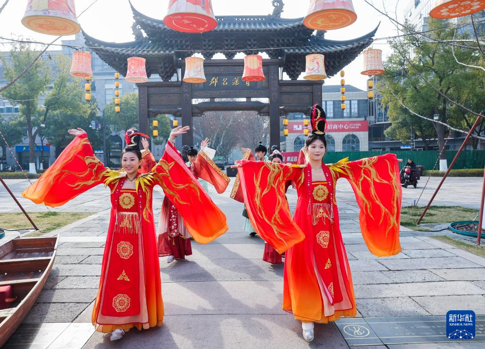 1月14日,浙江省嘉兴市南湖区子城遗址公园上演“宋韵流芳·嘉兴记忆”传统民俗演出。