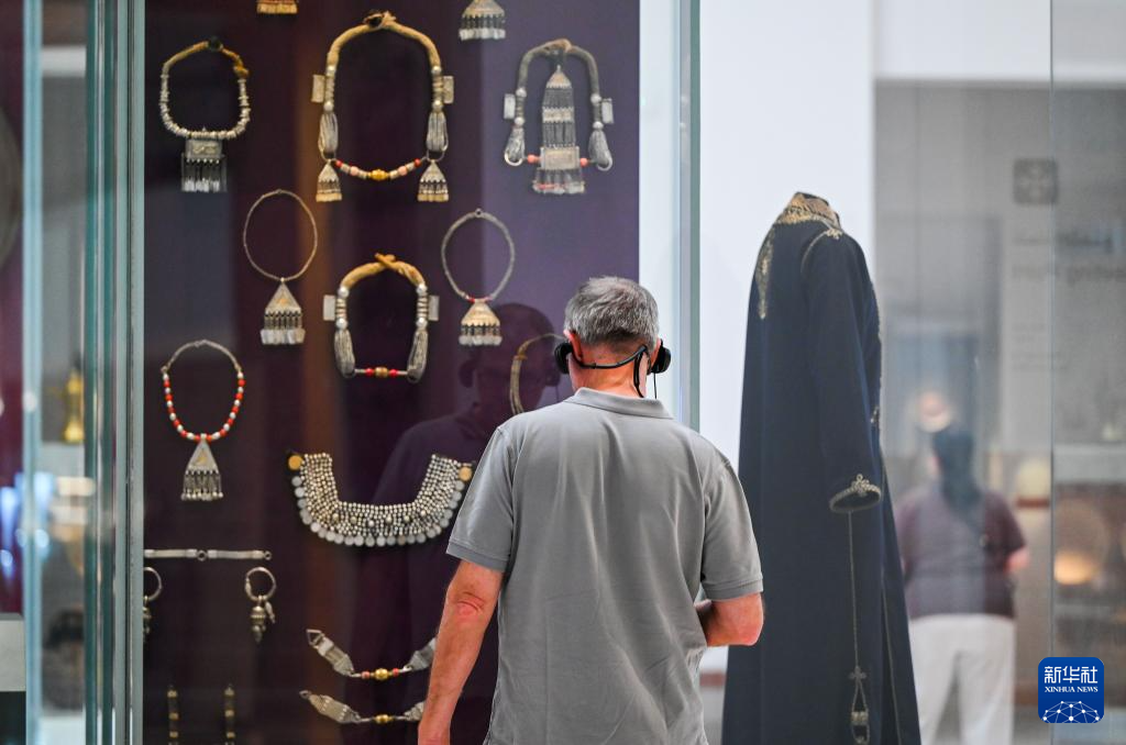 1月12日,游客在阿曼马斯喀特参观阿曼国家博物馆。